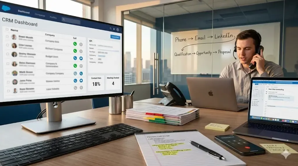 Un cold call seul convertit rarement. La vraie performance vient de la combinaison intelligente de canaux.